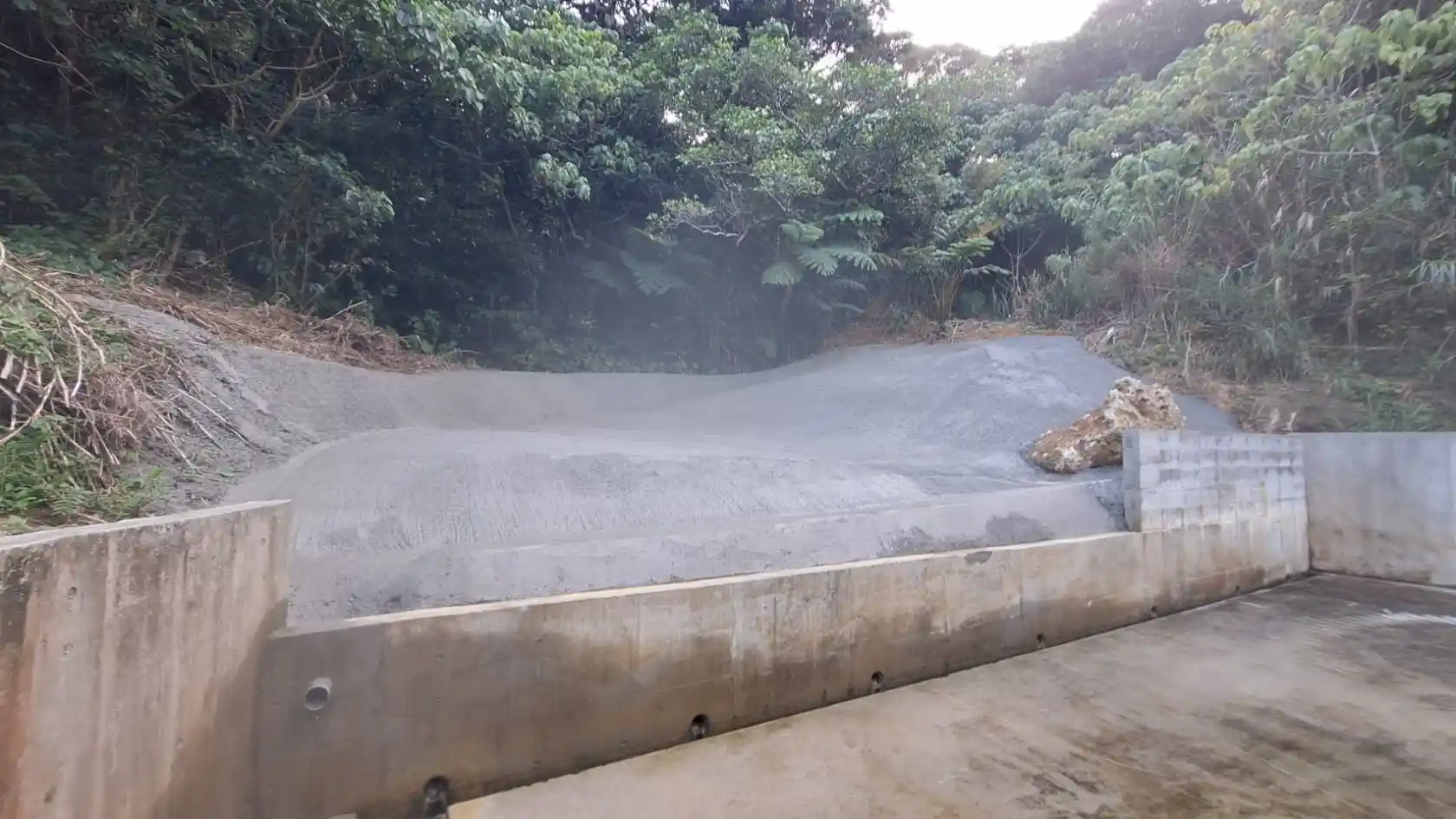 草刈後のステコン左官作業