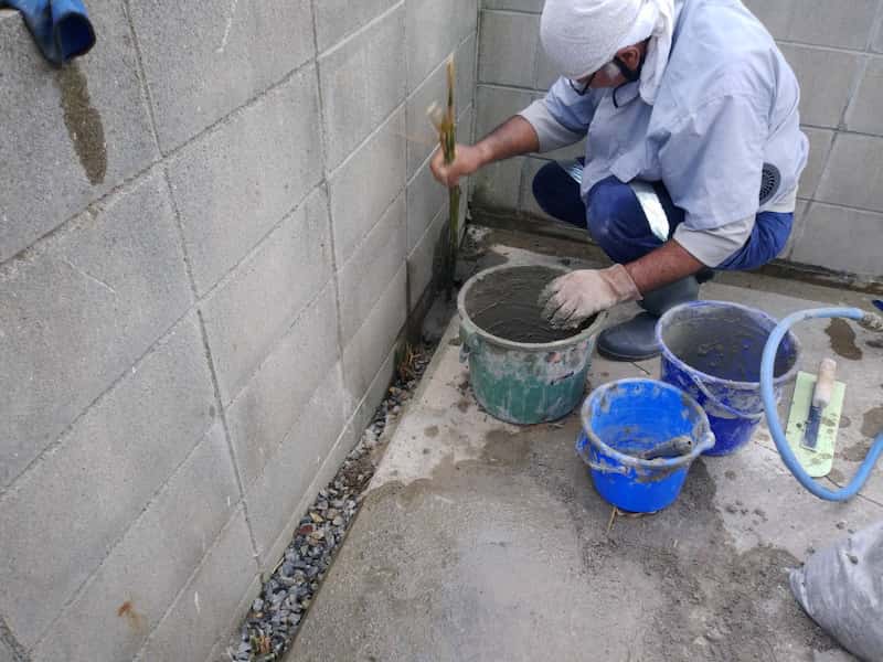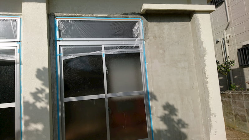 リフォーム時に壁の防水コーキング、左官の様子です。