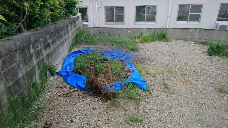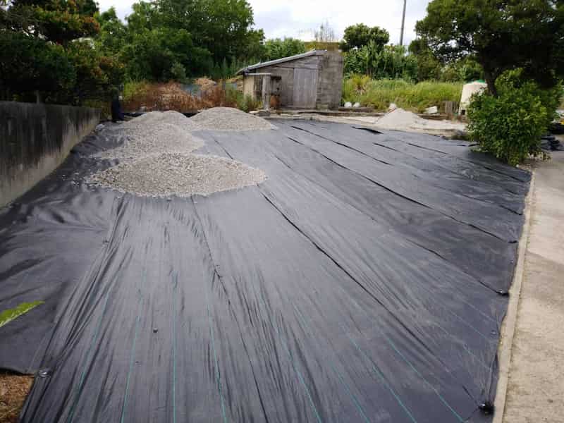 草中シート張り、クラッシャー敷き