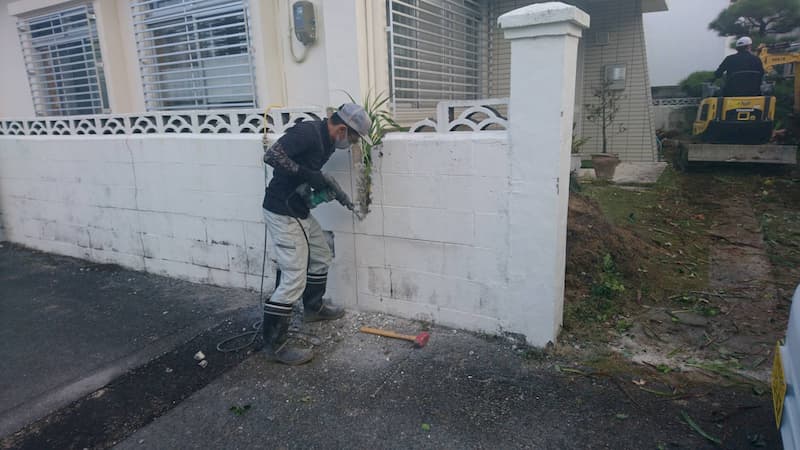 ブロック塀草取り