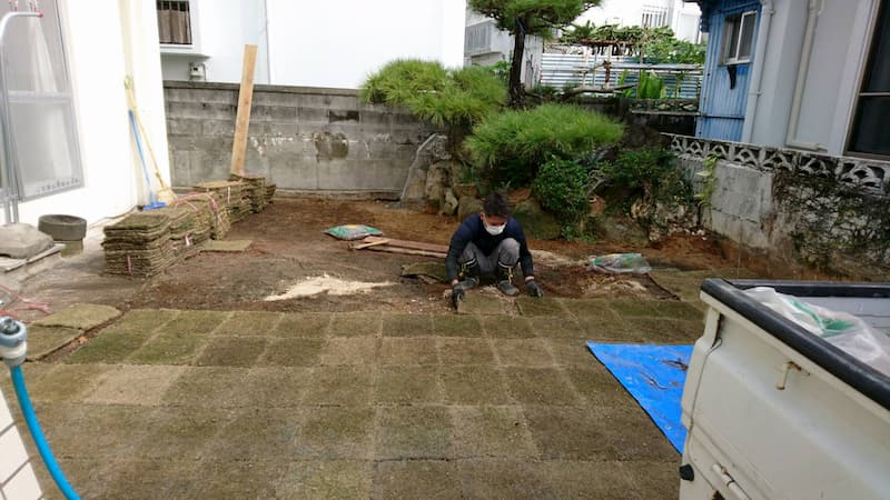 土間工事と芝生敷き詰め