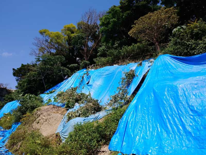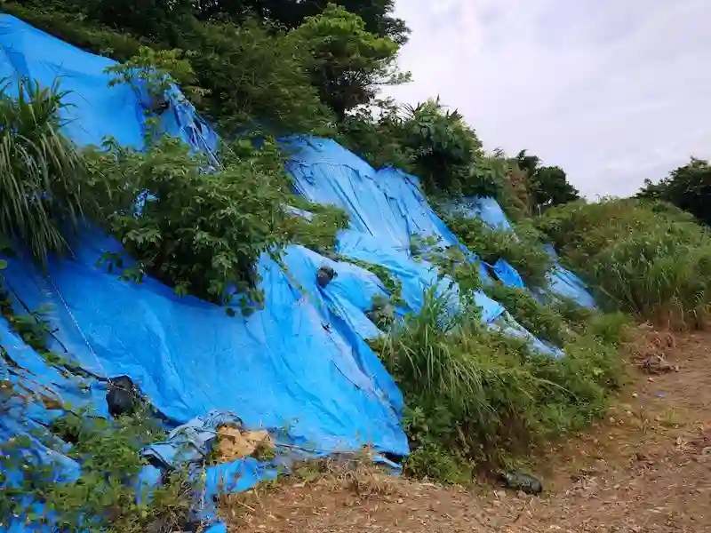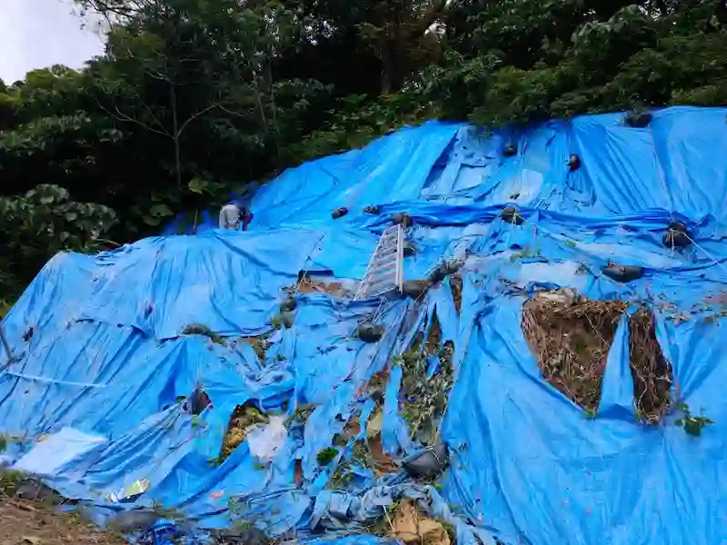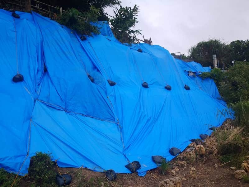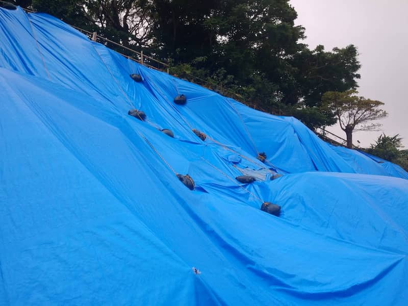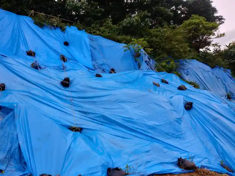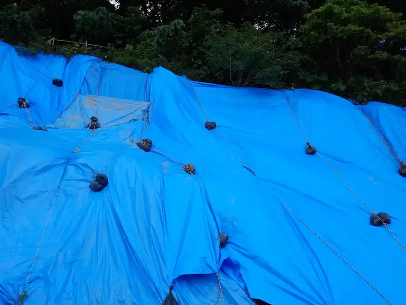 ブルーシート張り替え土のう袋設置