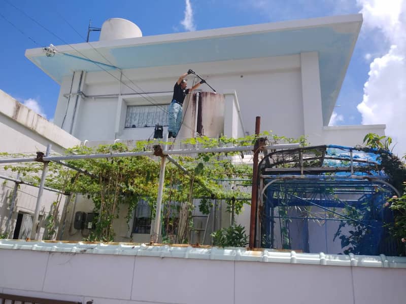 日差し、ベランダ洗浄