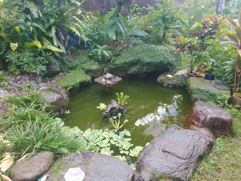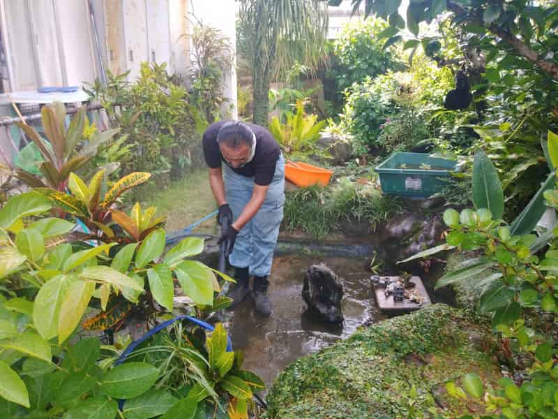 防水工事と池の洗浄水の入れ替え
