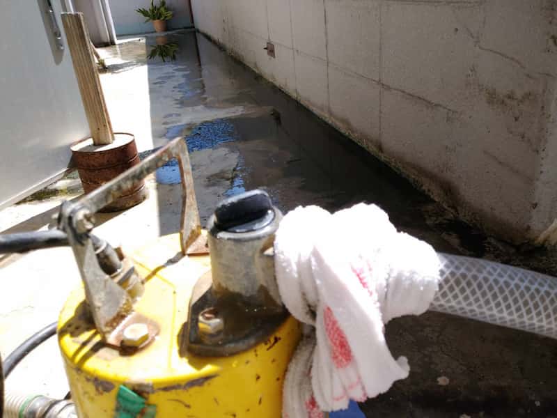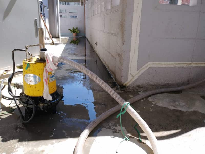 那覇市牧志床下のポンプで水抜き