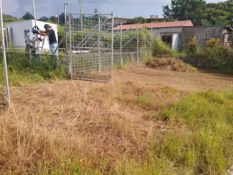 草刈、パイプ柵、小屋作り