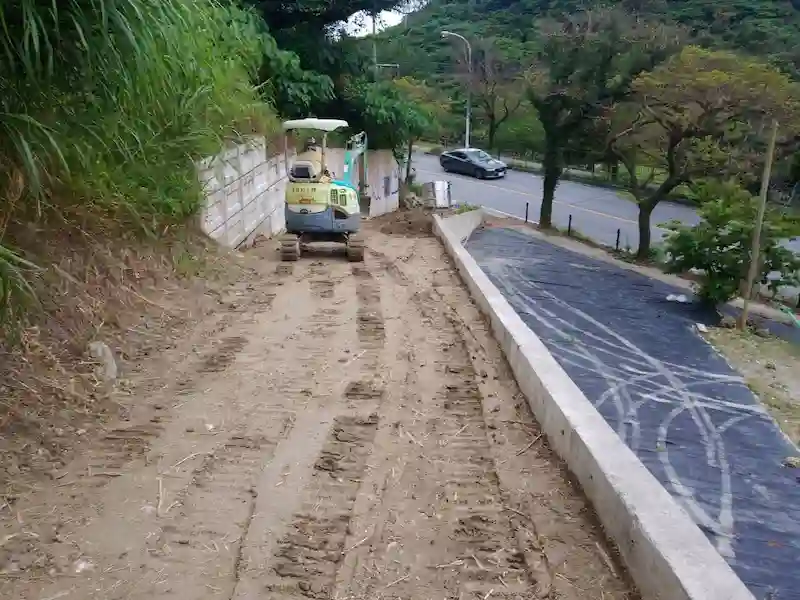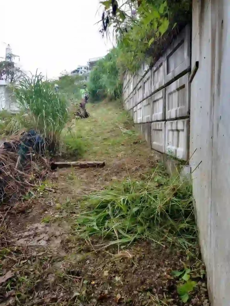 擁壁草刈重機で整地