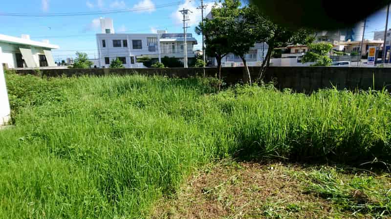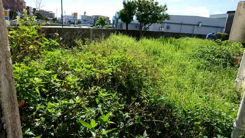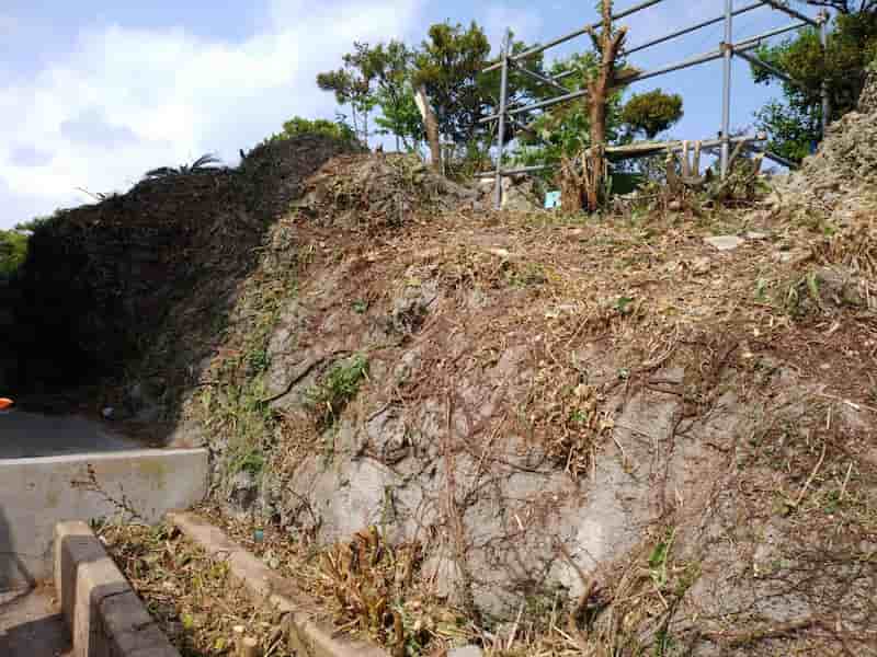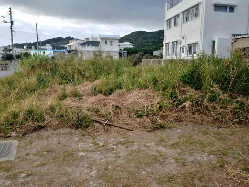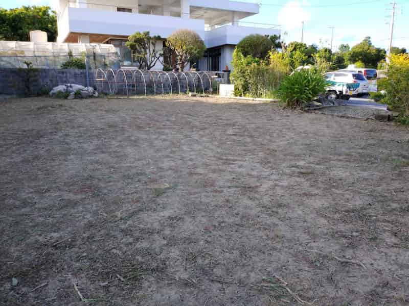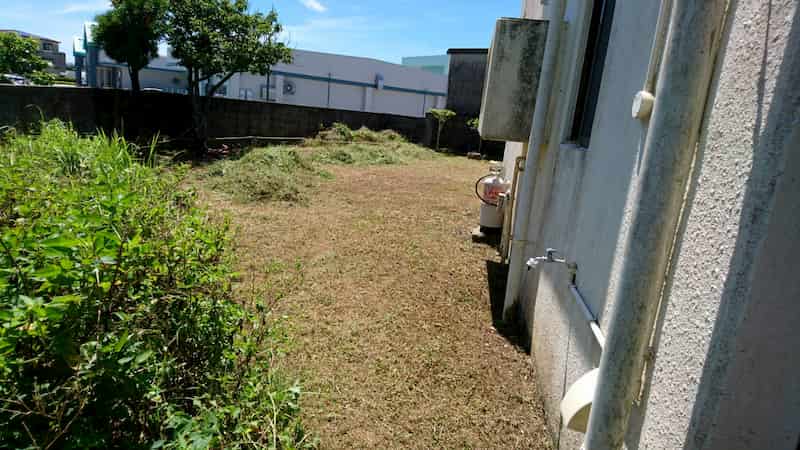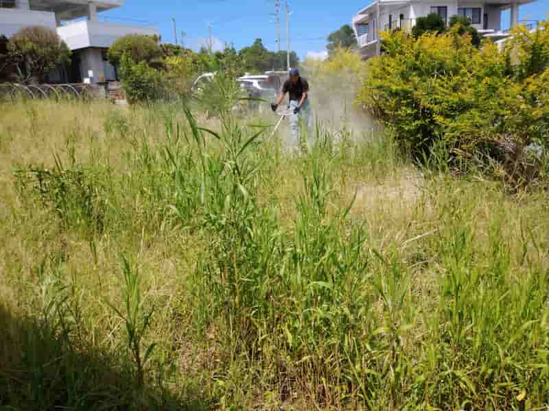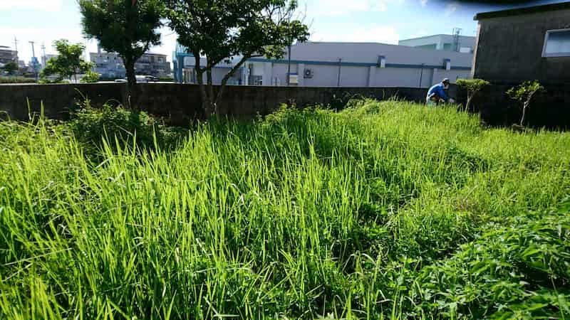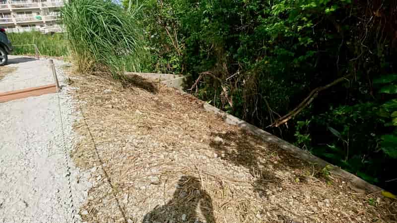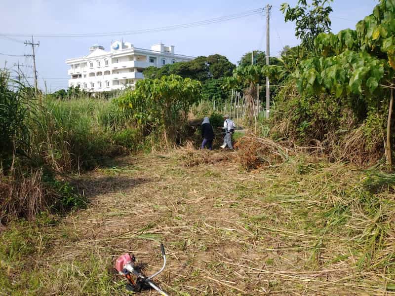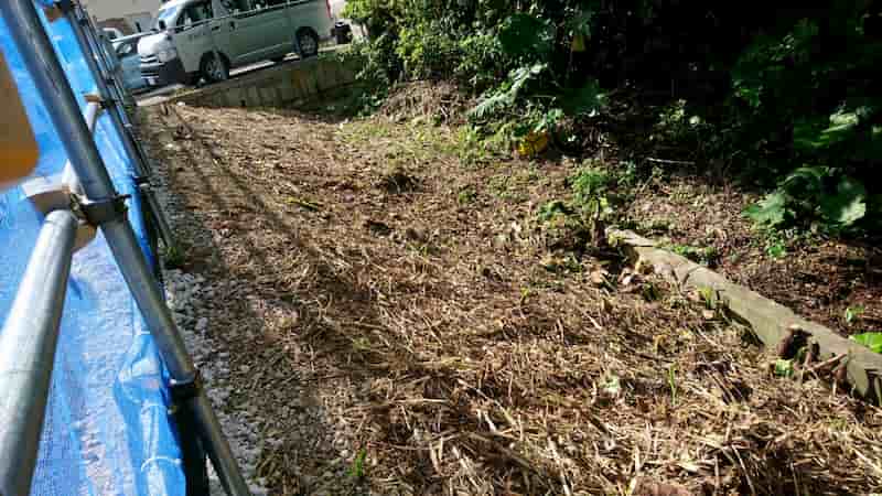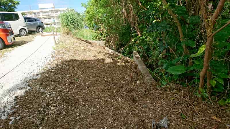 南城市大里草刈、草中シート張り、クラッシャー敷き