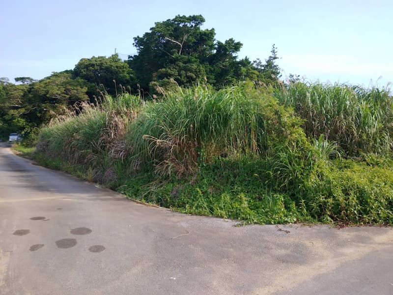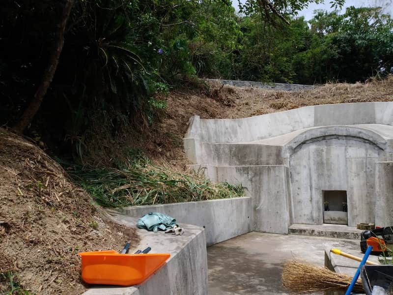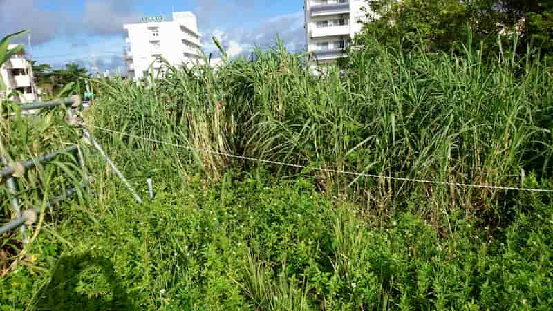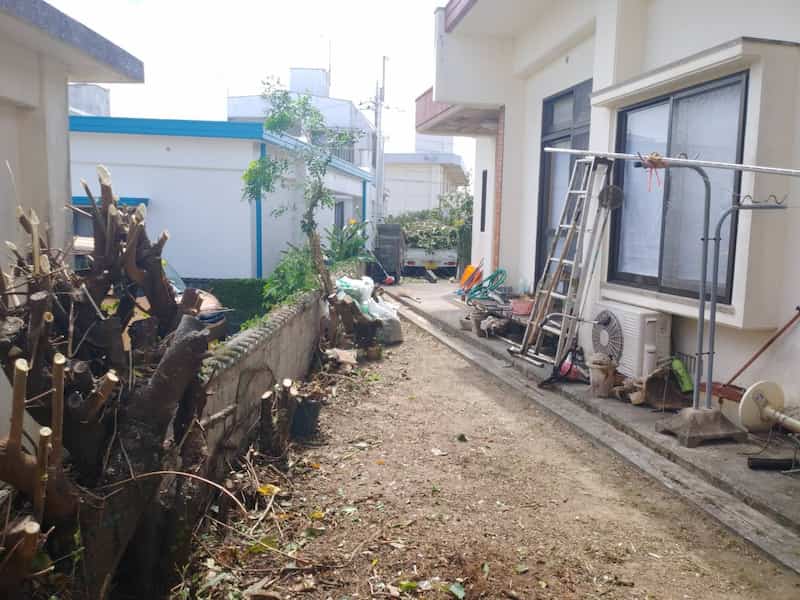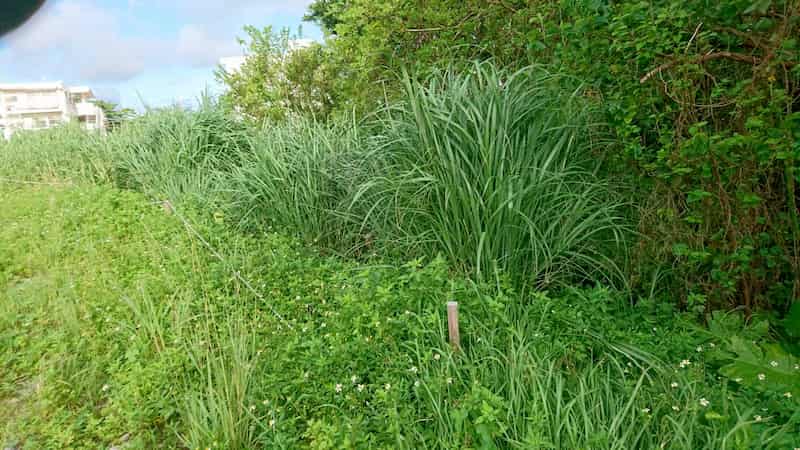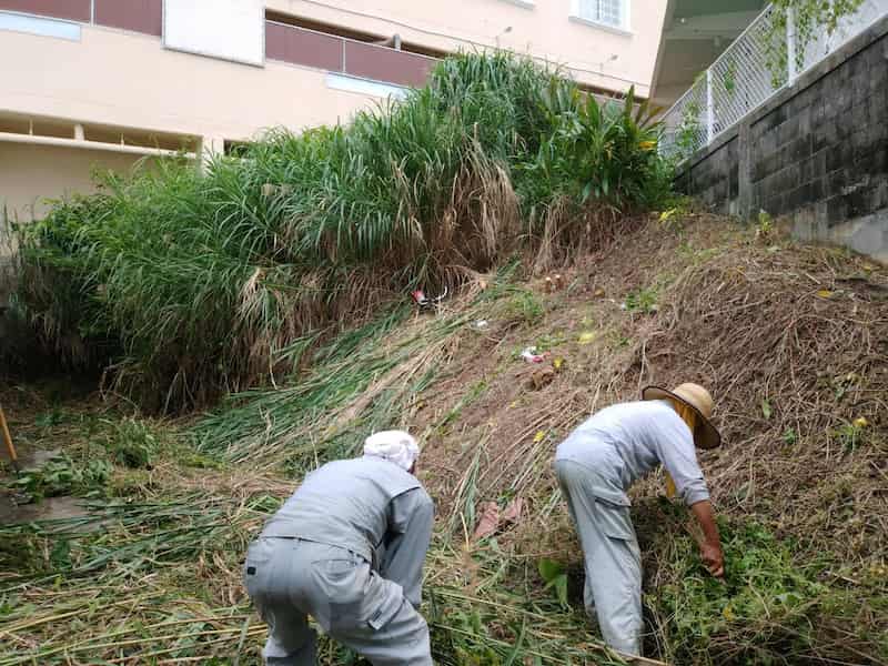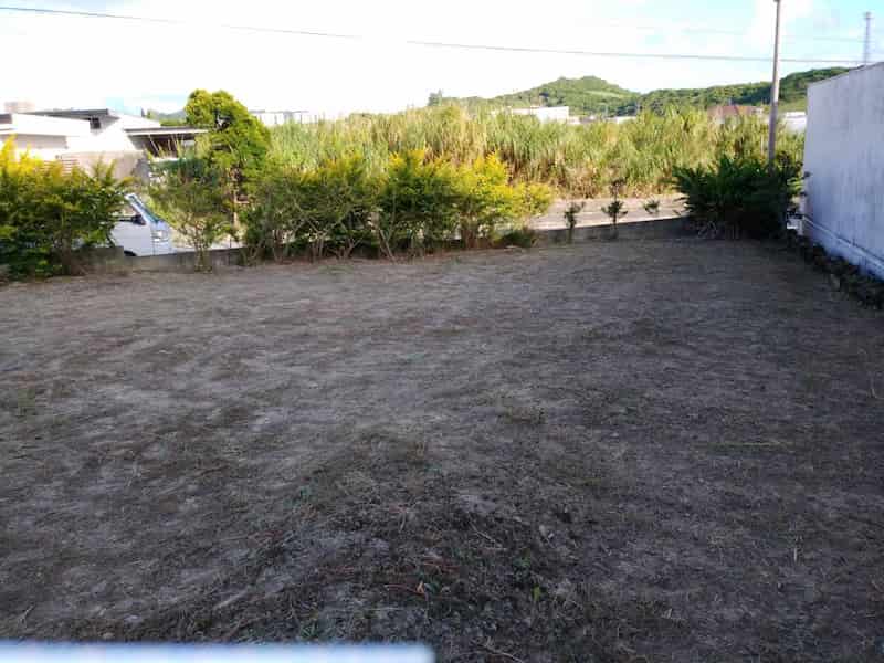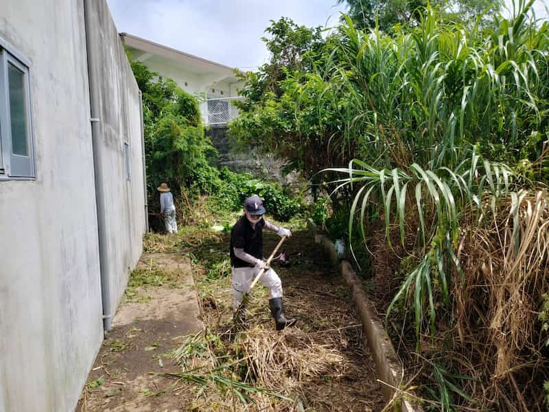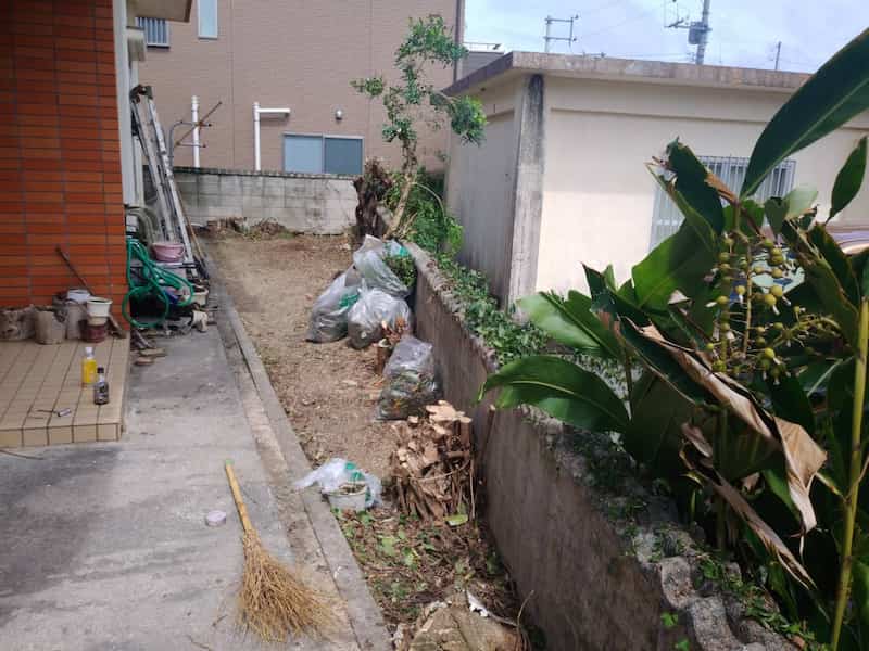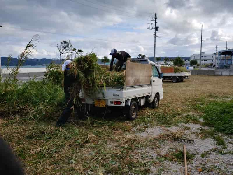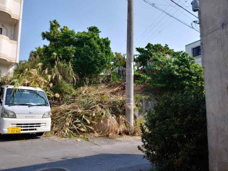 南城市大里草刈、草中シート張り、クラッシャー敷き