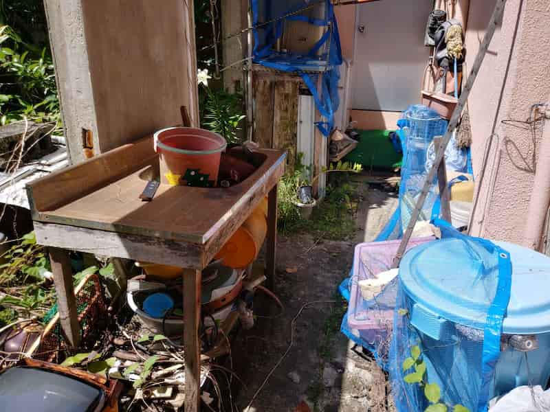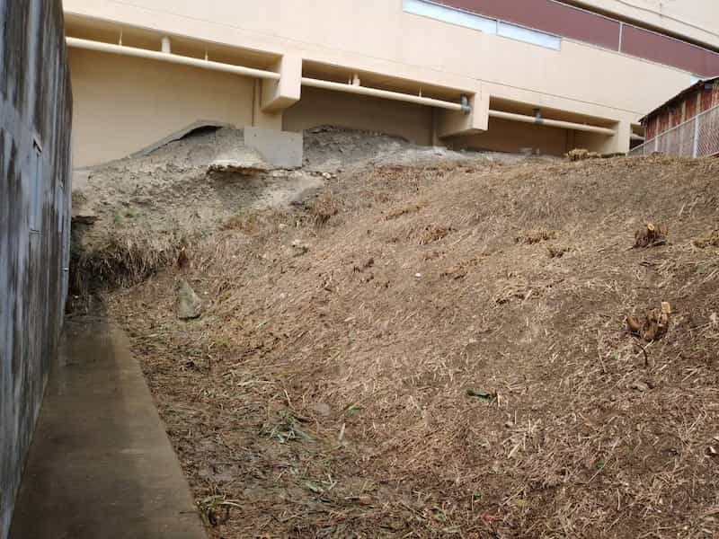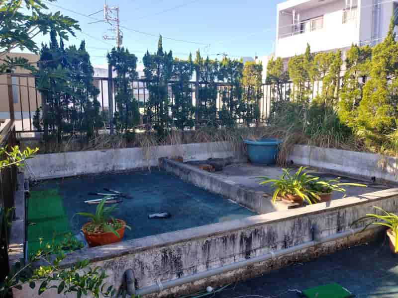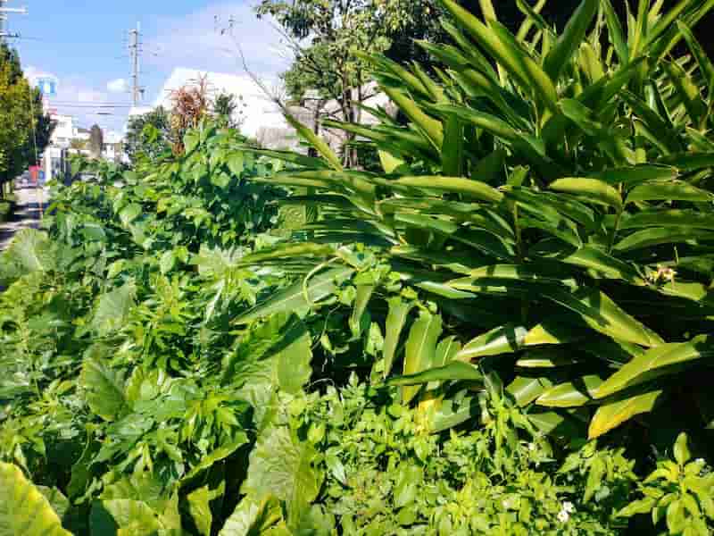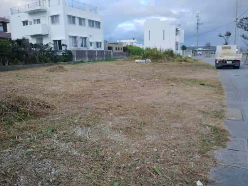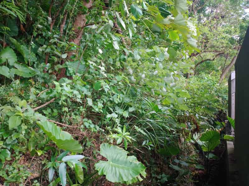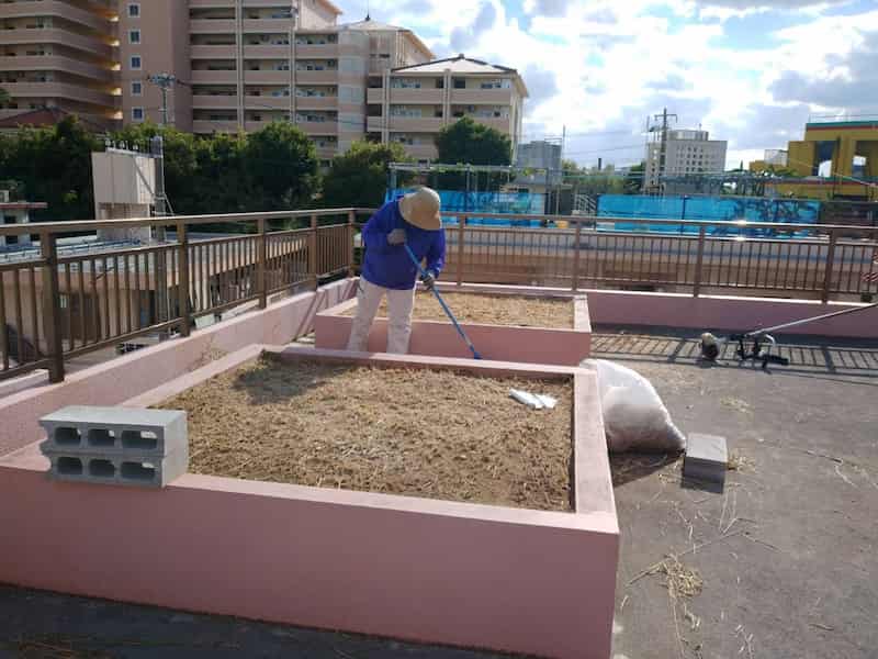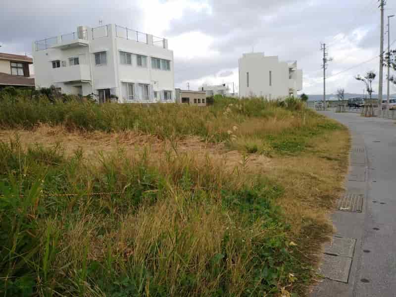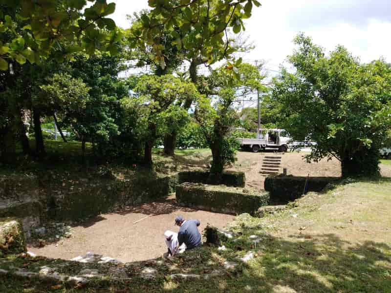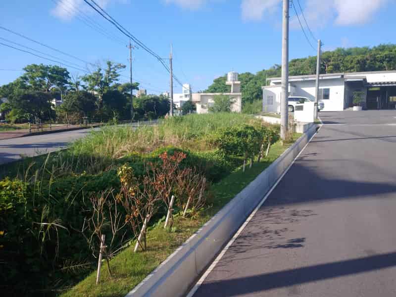 南城市大里草刈、草中シート張り、クラッシャー敷き