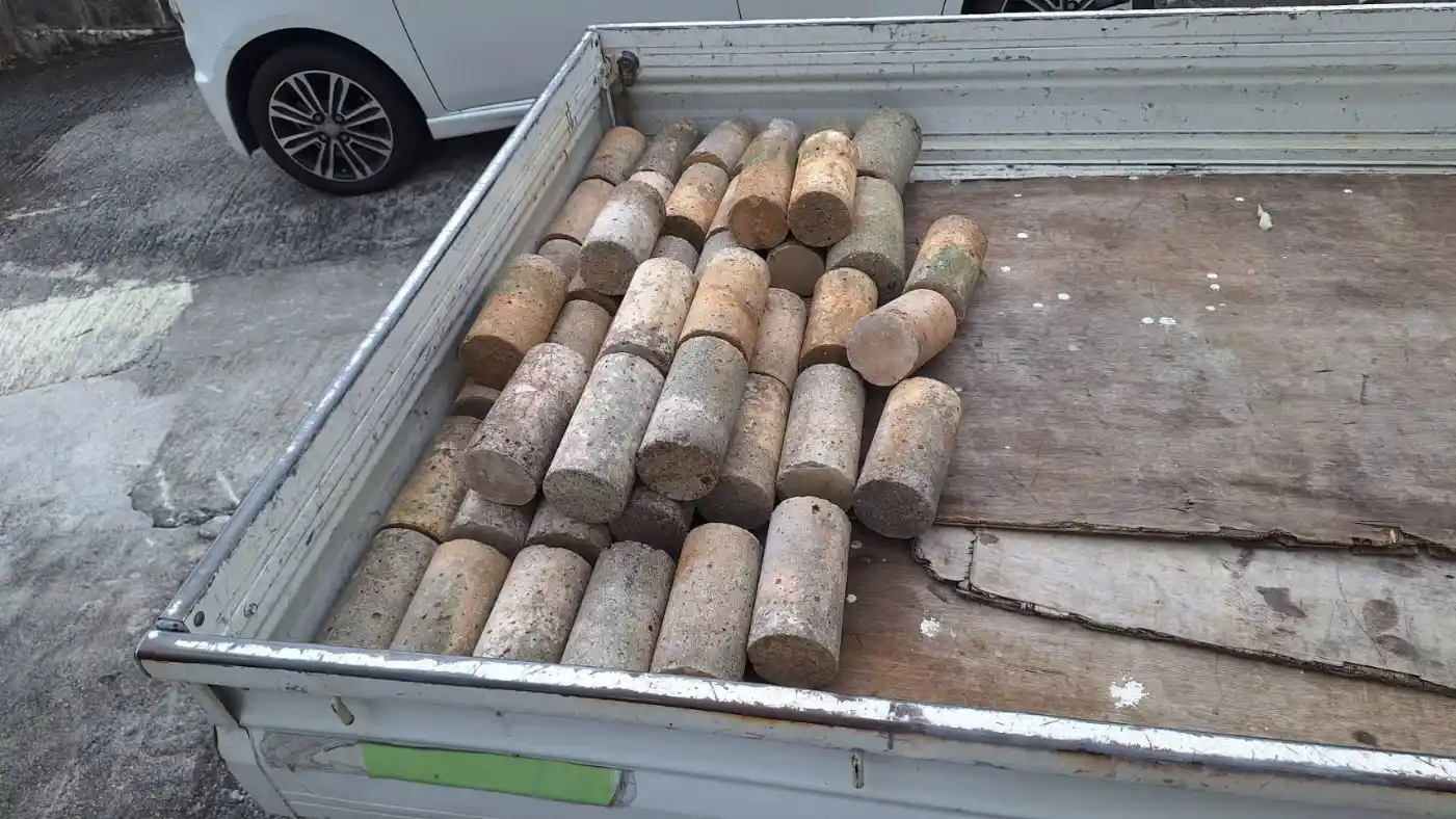 草刈後のステコン左官作業